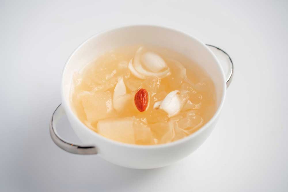 甜品部分延续广式甜汤与焗品的柔和气韵。「南瓜牛奶炖蛋」细腻香滑,「海底椰杏仁糖水」甜润清心;「焗紫薯西米布丁」温润软糯,「百合雪梨银耳羹」润泽甘甜,为整场广味旅程画上圆满句点。