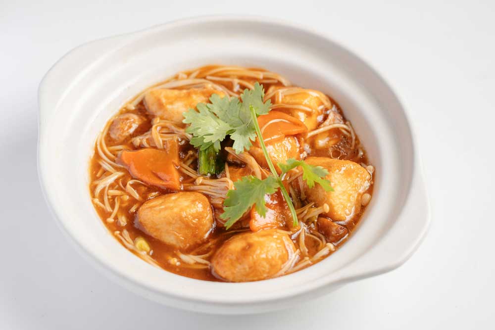 热菜部分融入创新广味巧思。「金针菇玉子豆腐」以轻盈鲜香演绎素味之雅,「萝卜丝煮蛋角」复刻岭南传统;「菌菇焖伊面」与「牛肉炒饭」兼顾饱腹与香气,火候精准,粒粒分明。「虫草花瘦肉粥」则以温润口感收尾,淡香醇厚,是点心之外的治愈之选。