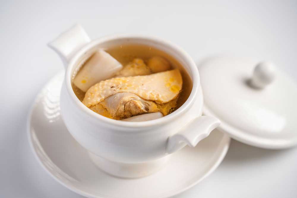 一盅「山药莲子炖小母鸡」老火靓汤,温润滋补,恰到好处地揭开味蕾序章。