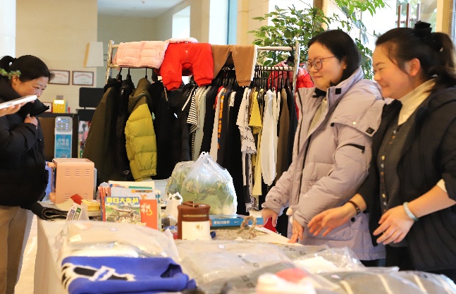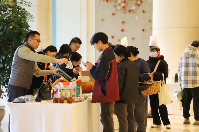 活动现场洋溢着热闹且温馨的氛围。酒店及日油化工的员工们积极响应,纷纷将家中精心挑选的闲置物品包括书籍、服饰、手工自制美食、文具、工艺品、家居用品、儿童玩具等等,以部门为单位布置成一个个别具特色的爱心售卖台。 员工们不仅充当“售货员”,热情介绍物品,更踊跃参与选购,以实际行动传递爱心。现场往来络绎不绝,叫卖声、欢笑与交谈声交织。点滴善意,如涓涓细流于虞城江畔汇聚,共同谱写了一曲动人的公益乐章。