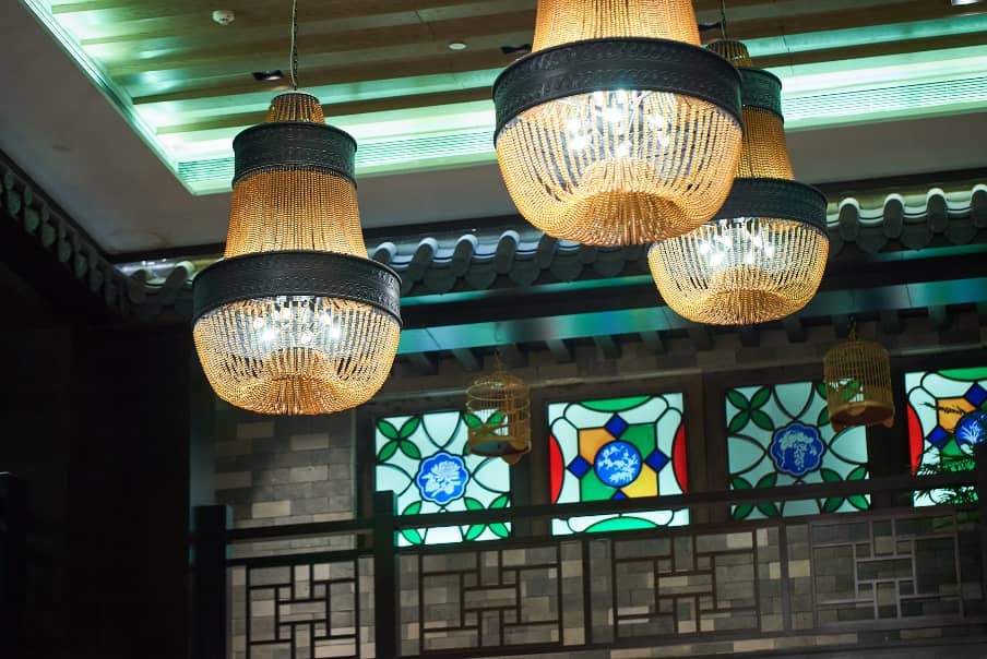 米其林星级食府明阁从西关大屋灵感巧思,以经典在地元数: 鸟笼、花厅、趟栊门及彩色琉璃满洲窗为斑斓诗篇。展览作品嵌入此空间,与光影共舞,成为可沉浸、可品味的视觉宴飨。