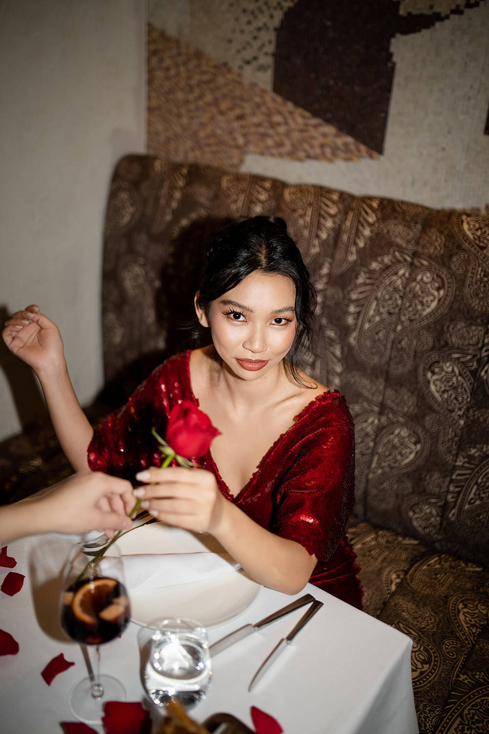 在中式古典意境中,细品以爱为名的匠心佳肴。“金玉良缘”三小碟精巧开篇,“情深似海”功夫汤温润暖心。主菜“情定三生”牛油焗小青龙与“心心相印”叉烧酱银鳕鱼,以鲜美珍材寄寓美好情思,佐以两杯“红衣女郎”起泡酒,更添微醺浪漫。最后以一盅清润的百合银耳雪梨羹,共祈爱情甜甜蜜蜜。在清雅古典的氛围中,共度温馨绵长的中式浪漫之夜。