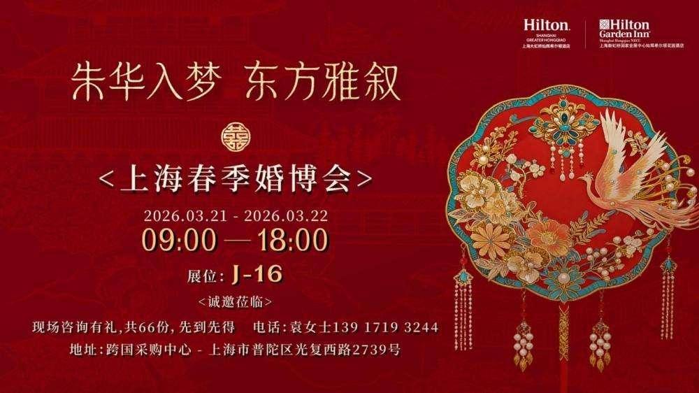 东方雅境,花开相许。上海春季婚博会即将启幕,上海大虹桥灿辉希尔顿酒店以朱红为底,宫灯为引,筑造东方诗意婚典空间。诚邀准新人于3月21日至22日莅临跨国采购中心J-16展位,共赴一场宫灯下的浪漫之约。